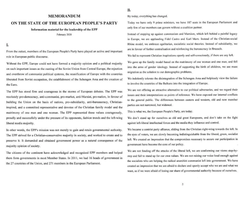 The memorandum is just another episode in the struggle around Fidesz’ (Hungary’s ruling party, Orban is the leader) their membership in the EPP. Before the European elections, Fidesz its membership was temporarily suspended by the EPP’s leadership because of the several infringes of Hungary against the rule of law. In recent weeks, negotiations between Fidesz and EPP are on-going about the giving back of all party rights to the Hungarians.